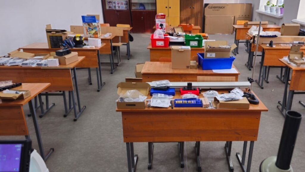 Жабдууларды жеткирүү «Алтын казык» мамлекеттик программасын ишке ашыруунун алкагында жүргүзүлдү. Жалпысынан мектептерге 5 500 комплект лабораториялык жабдуу, 220 интерактивдүү панель жана 220 ноутбук жеткирилди.