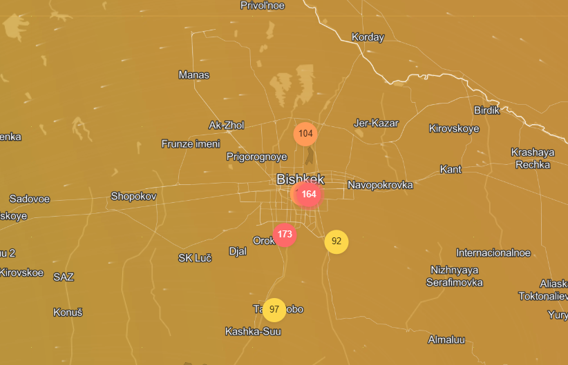 Учурдагы AQI индекси 158 бирдикти түзөт. Эл аралык классификацияга ылайык, булгануунун мындай деңгээли «абдан зыяндуу» деп саналат.