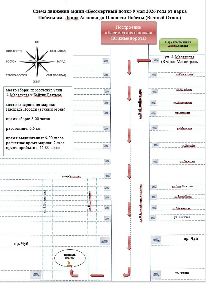 Уюштуруучулар Бишкек шаарында 9-майда өтө турган «Өлбөс полк» жүрүшүнүн каттамын бекитишти.