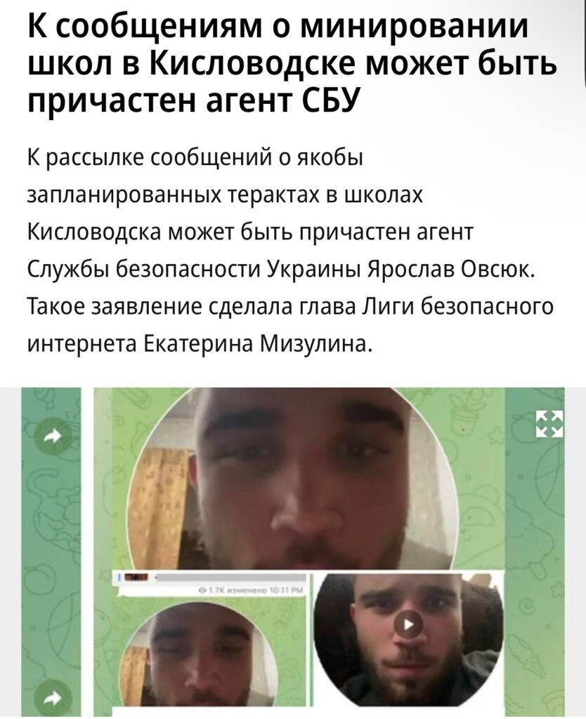 Бишкек милициясы окуучуларга коркутуу билдирүүлөрүн тараткан адамдын өздүгүн тактады. Ал — Украина жараны, 20 жаштагы Ярослав Овсюк экени белгилүү болду.