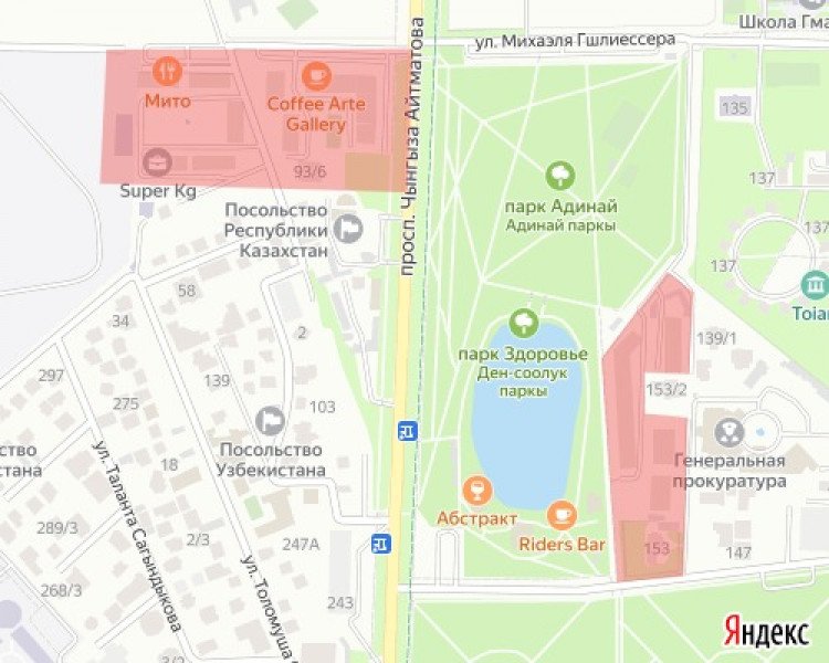 - Т.Океев көчөсү 39/3, 39/4, 39/6, 39/7, 39/8;