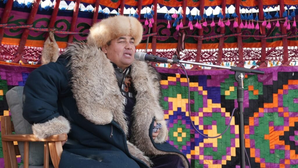 Манасчы Дөөлөт Сыдыков 25-октябрда Манас шаарындагы «Азаттык» аянтында 7 саат токтобой Манас эпосун айтып берди.