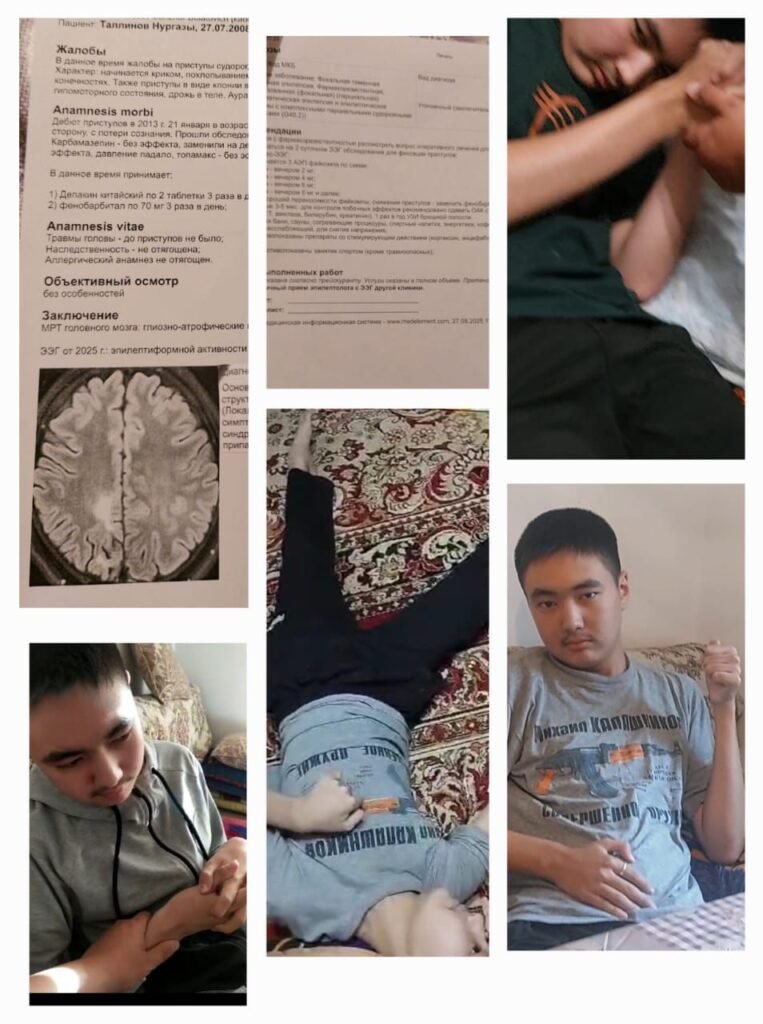 «Биздин уулубуз 13 жылдан бери ушул оору менен жашап келет. Дарыгерлердин сунуш кылган ар кандай фармакологиялык дарылоо ыкмаларына карабастан, бардык эпилептикага каршы дары-дармектер жардам берген жок, ал эми оору жыл сайын күчөөдө. Ар бир күнү оорусу кармап калат. Иммунитет төмөн болгондо, оорунун кармашы 100гө чейин жетет. Ал көп жолу кулап, оор жаракаттарды алган. Ал дайыма көзөмөлдө болууга муктаж — бир мүнөткө дагы жалгыз калтыра албайбыз. Дарыгерлер азыр гана хирургиялык операция анын жашоосун жеңилдете алат дешет. Операциясыз приступтар толук иштебей калууга, кээде параличке алып келиши мүмкүн», — дешти Нургазынын ата-энеси.