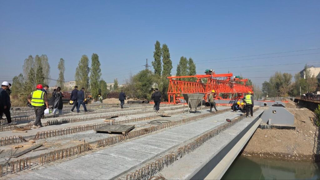 Андан соң Айбек Жунушалиев Ауэзов көчөсүндөгү көпүрөнү оңдоо иштерин текшерди. Ал жерде узундугу 24 метр болгон устундар орнотулууда. Көпүрөнүн жалпы туурасы 24 метрди түзөт, ал эми эки бөлүк кошулганда узундугу 70 метрге жетет. Көчөнүн унаа жүрүүчү бөлүгү төрт тилкеден турат, эки жагына үч метрлик жөө жүргүнчүлөр үчүн тротуарлар салынат.