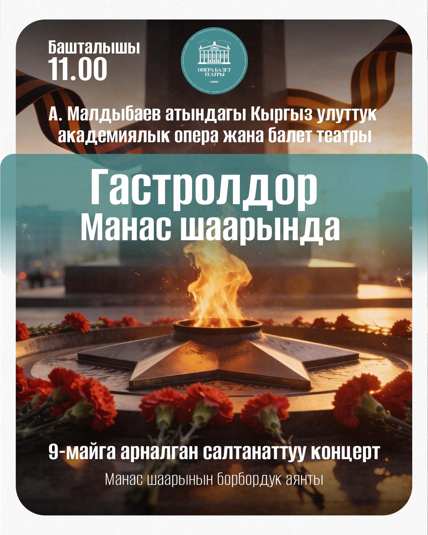 - 9-май, саат 11:00: Манас шаарында Улуу Жеңиш күнүнө карата концерт берилет. Программада согуш жылдарындагы чыгармалар аткарылат.
