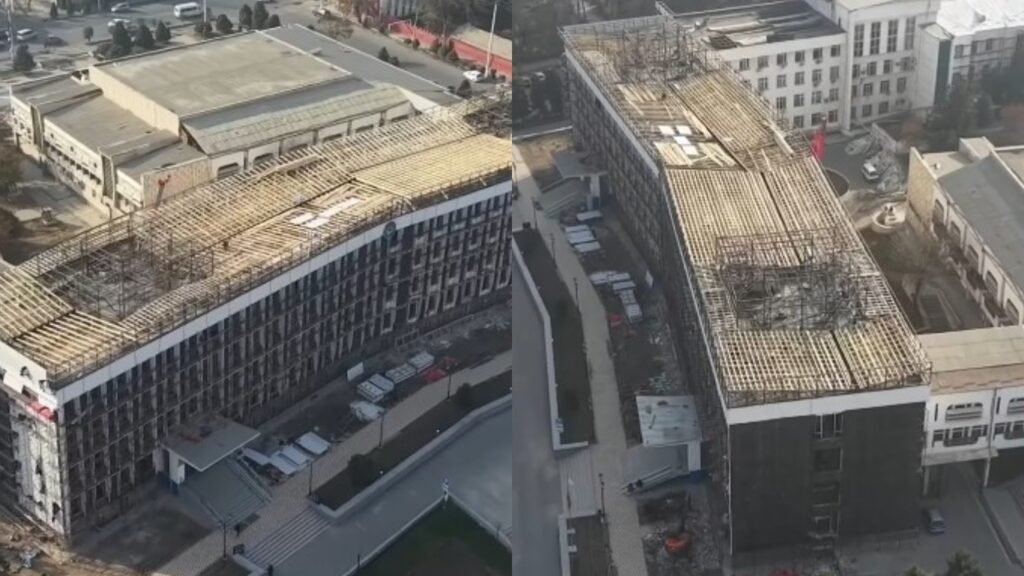 Учурда мэрия жана президенттин Ош облусундагы өкүлчүлүгү жайгашкан имаратты оңдоп-түзөө иштери жүрүүдө.