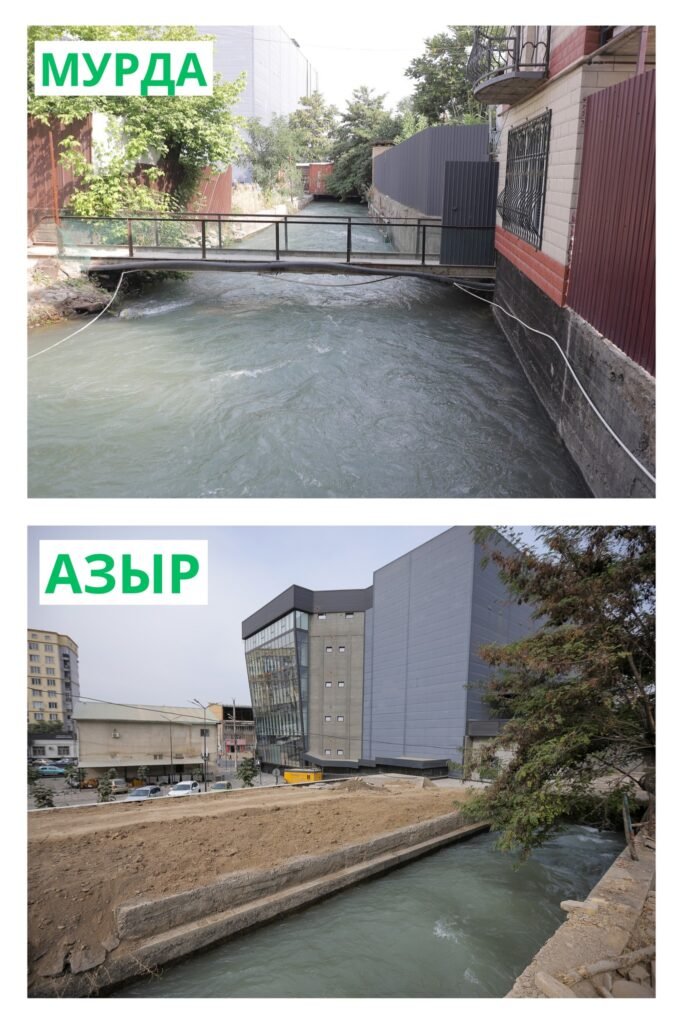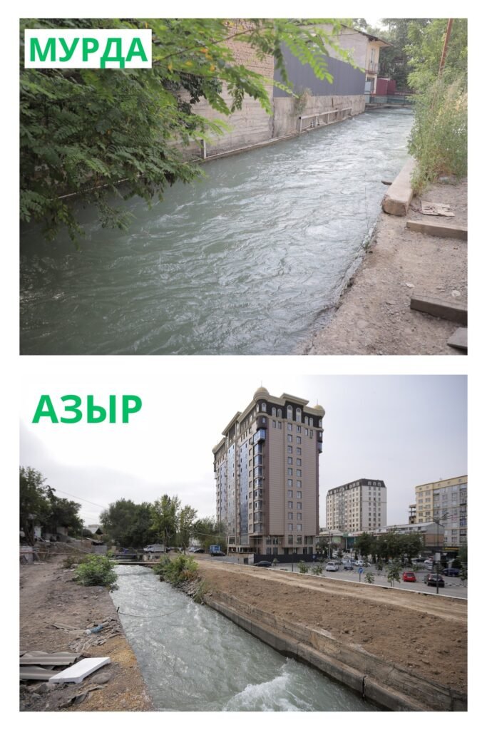 Ош шаарынын мэриясы шаардагы каналдардын мурунку жана азыркы абалын сүрөттөр аркылуу көрсөттү.