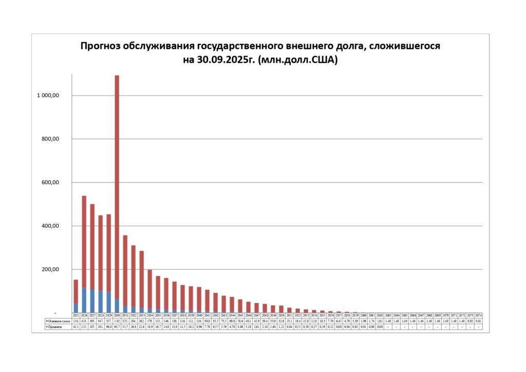 Эгер мурда эксперттер Финансы министрлигинин ачык маалыматтарына таянып, 2030-жылды сын чекит (1,15 млрд доллардан ашык төлөм менен) деп атап келишсе, президент айткан маалыматтар башка көрүнүштү жаратууда. Төлөмдөрдүн «туу чокусу» беш жылдан кийин эмес, азыр эле башталып, жогорку чыгашалардын «тоо платосуна» айланууда.