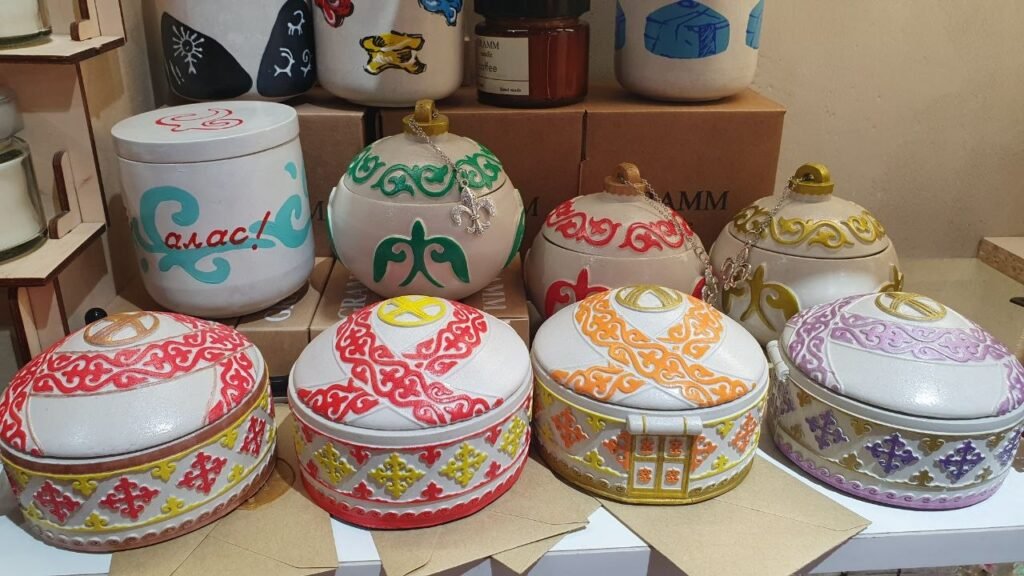 Например, там есть свечи с этнодекором и изгоняющей негатив арчой, кыргызские эко-благовония «ысырык» и курильницы для них, глиняная и керамическая посуда ручной работы, зажигалки, термосы, ежедневники, стикеры с кыргызскими достопримечательностями и узорами, брошки и брелки-обвесы в этностиле, женские и мужские украшения и аксессуары в кыргызском стиле «на каждый день». Любителям настолок зайдут в подарок наборы национальных игр и игры по мотивам кыргызского фольклора: «Улуу мелдеш», «Топ таш», «Чуко» и другие.