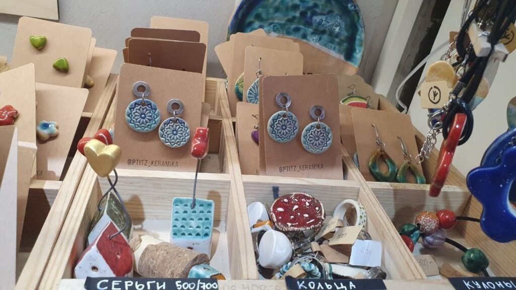 Керамические украшения с натуральными камнями есть и у Cut a dash. С ожерельями и браслетами у них соседствуют керамические статуэтки и подсвечники made in KG.