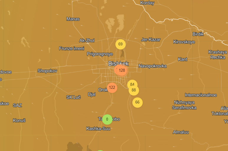 По состоянию на 27 января столица Кыргызстана заняла 23-ю строчку в мировом рейтинге качества воздуха (World Air Quality Index).
