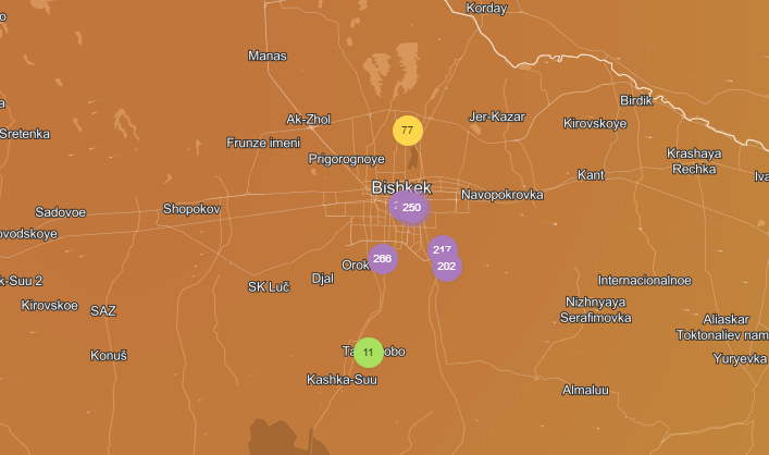 По состоянию на 14 января столица Кыргызстана заняла 4-ю строчку в мировом рейтинге качества воздуха (World Air Quality Index).