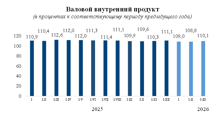 По данным Национального статистического комитета, ВВП за январь–март 2026 года составил 428,6 млрд сомов — на 10,1% больше, чем за тот же период прошлого года. В структуре экономики больше половины — 50,4% — приходится на сферу услуг. Промышленность и сельское хозяйство дают 33,2%, остальные 16,4% — чистые налоги на продукты.