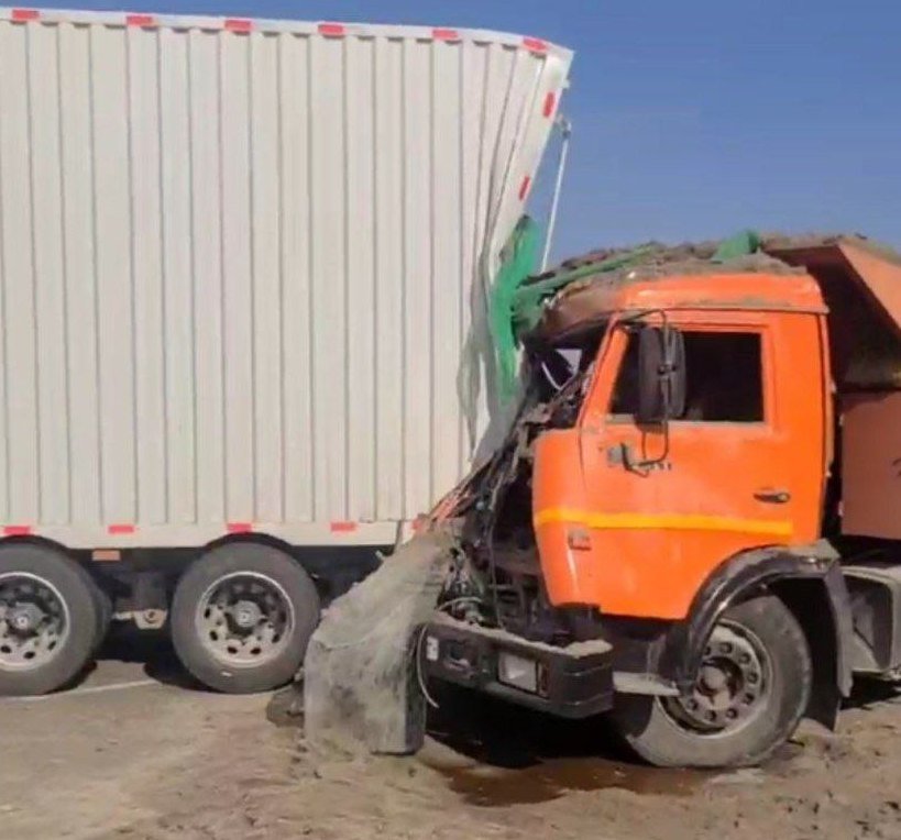 Авария произошла сегодня, 25 октября, около 13:00 на трассе Бишкек — Нарын — Торугарт. По предварительным данным, КамАЗ, двигавшийся в сторону востока, врезался в прицеп фуры. От сильного удара кабину грузовика отбросило на обочину.