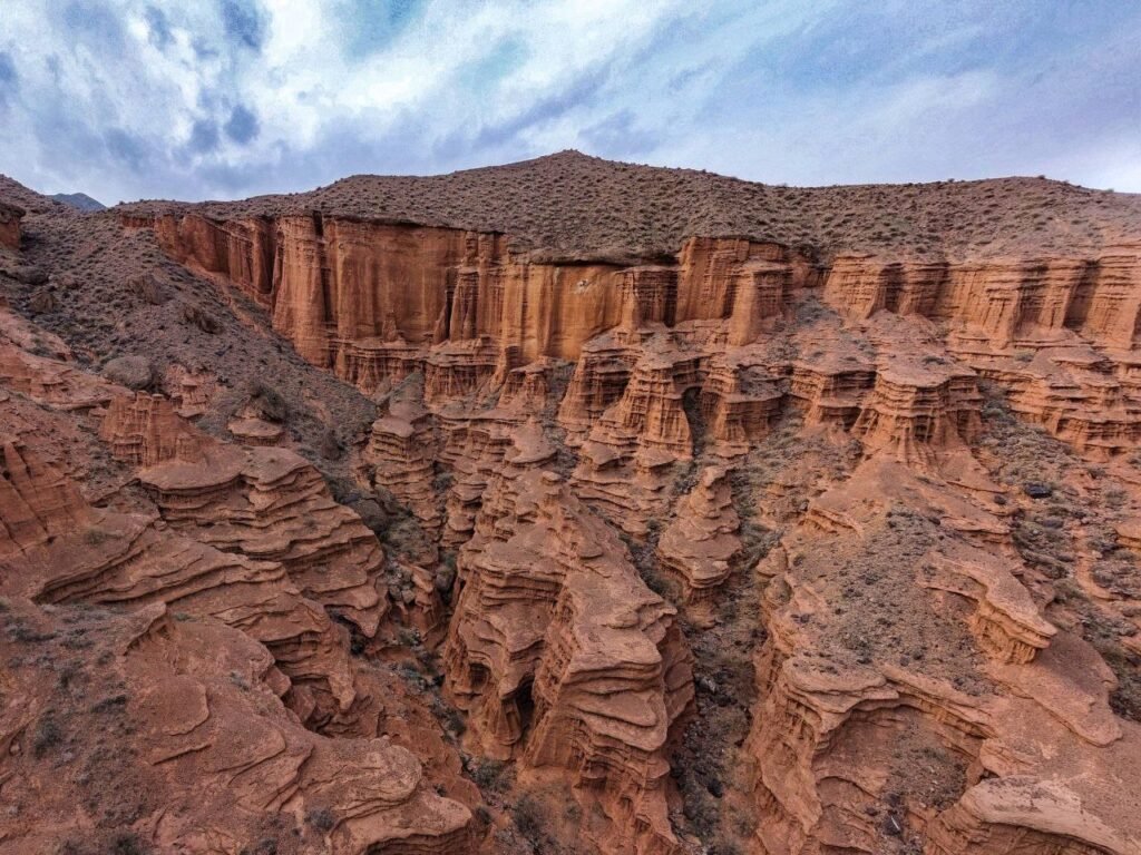 Формирование каньонов заняло миллионы лет: колебания уровня древнего пра-Иссык-Куля, сезонные дожди, селевые потоки и постоянное выветривание постепенно разрушали рыхлые осадочные породы, превращая плато в сложный каменный лабиринт.
