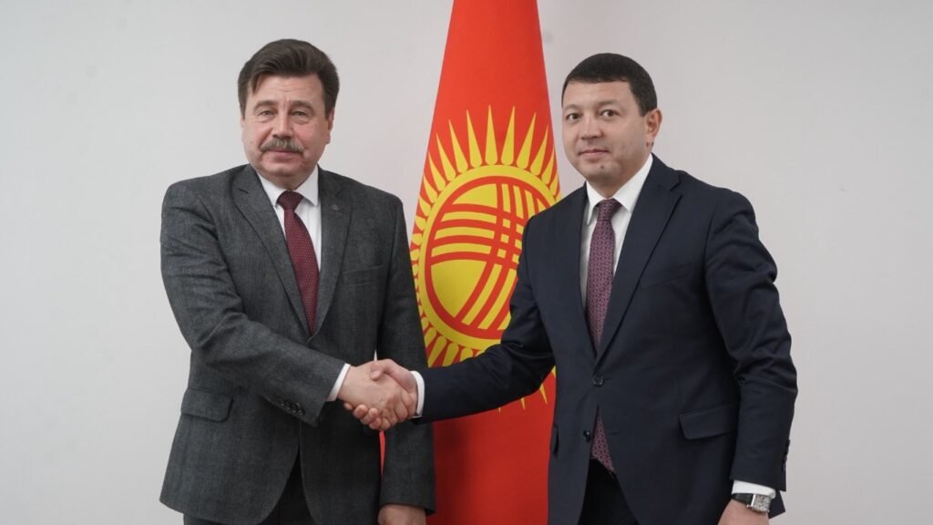 Министр культуры Мирбек Мамбеталиев встретился с послом России в Кыргызстане Сергеем Вакуновым. Об этом сообщила пресс-служба Министерства культуры.