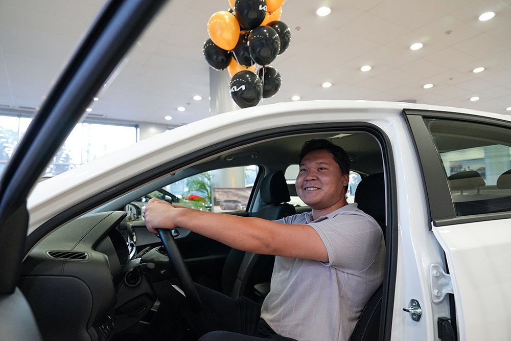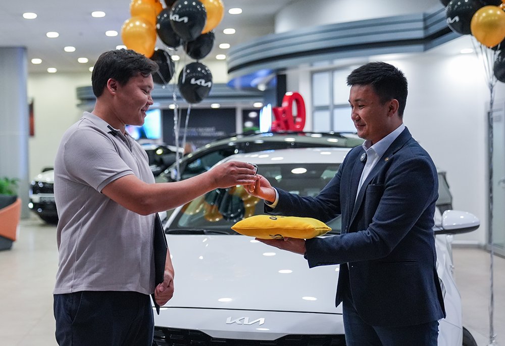 26-летний финансовый аналитик Молдосадык уулу Бекназар получил ключи от новенького Kia cerato.