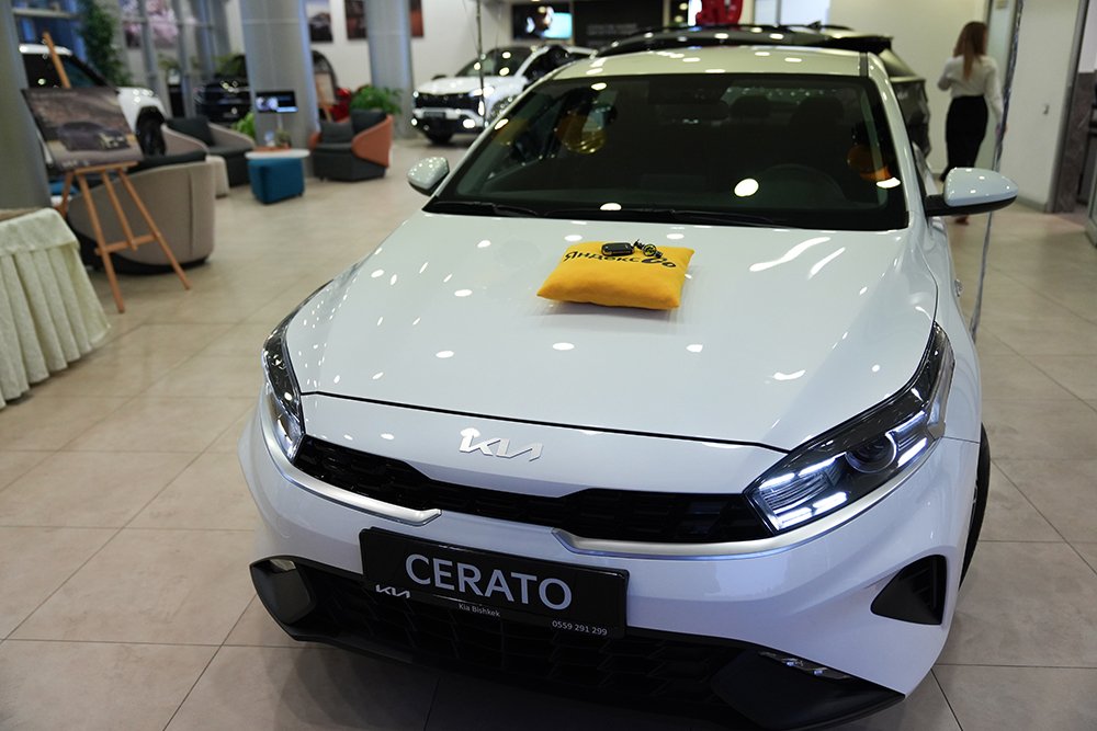 В Kia Center Bishkek прошло награждение победителя акции «Сейф» от Яндекс Go. Счастливым обладателем нового белого седана Kia cerato в комплектации Luxe стал житель столицы Молдосадык уулу Бекназар.