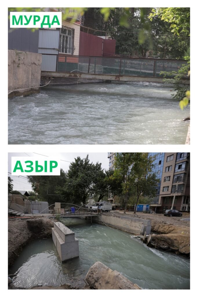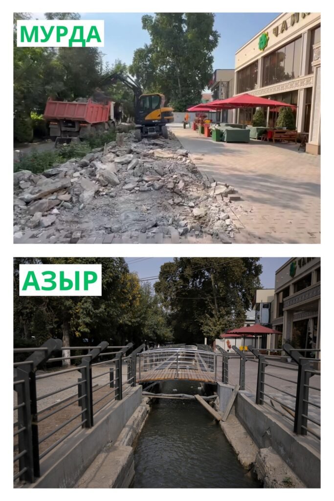 Мэрия города Ош показала на фотографиях прежнее и нынешнее состояние городских каналов.
