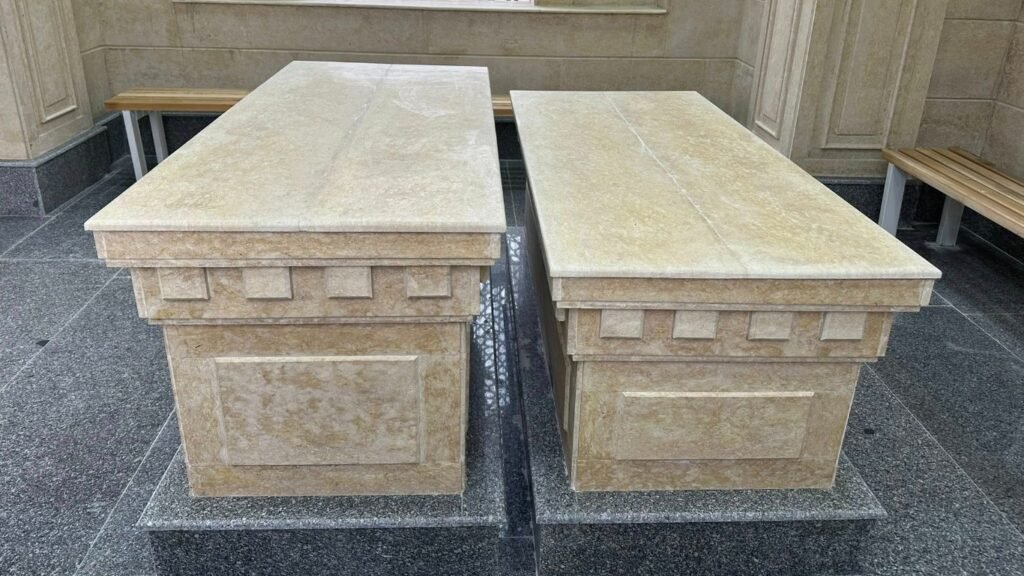 Новый мавзолей оформлен мраморными плитами, внутри созданы удобные условия для чтения куран зыяратчами. В ближайшие дни состоится официальное открытие с участием Камчыбека Ташиева, потомков и родственников Алымбека датки и Курманжан датки.