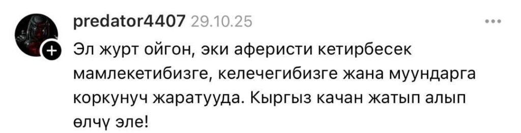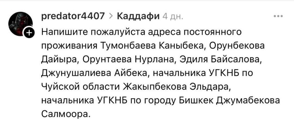 ГКНБ Кыргызстана сообщил о задержании 46-летнего гражданина, которого подозревают в распространении провокационных сообщений и призывов к массовым беспорядкам в соцсетях. По данным спецслужбы, он был администратором популярных аккаунтов predator4407 в Instagram и Threads.