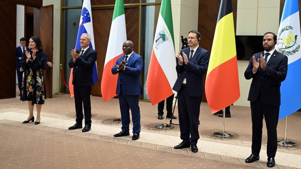 Ишеним грамоталарын Словениянын элчиси Аленка Сухадольник, Италиянын элчиси Антонелло Де Риу, Экваториалдык Гвинеянын элчиси Лусиано Нкого Ндонг Айекаба, Бельгия королдугунун элчиси Эрик Де Майер жана Гватемаланын элчиси Эдуардо Энрика Эрнандес Ресинос тапшырган.