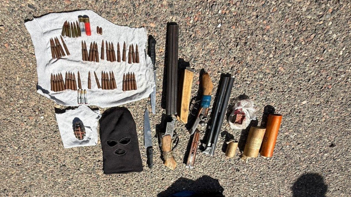 Атайын кызматтын маалыматында, аталган жашыруун жайдан 2 кесилген мылтык, 2 мина, 1 өзүн-өзү жардыруучу түзүлүш, 1 граната, тротил, 1 бет кап, 2 бычак, 3 жандыргыч жана ар кандай калибрдеги патрондор табылып алынган.